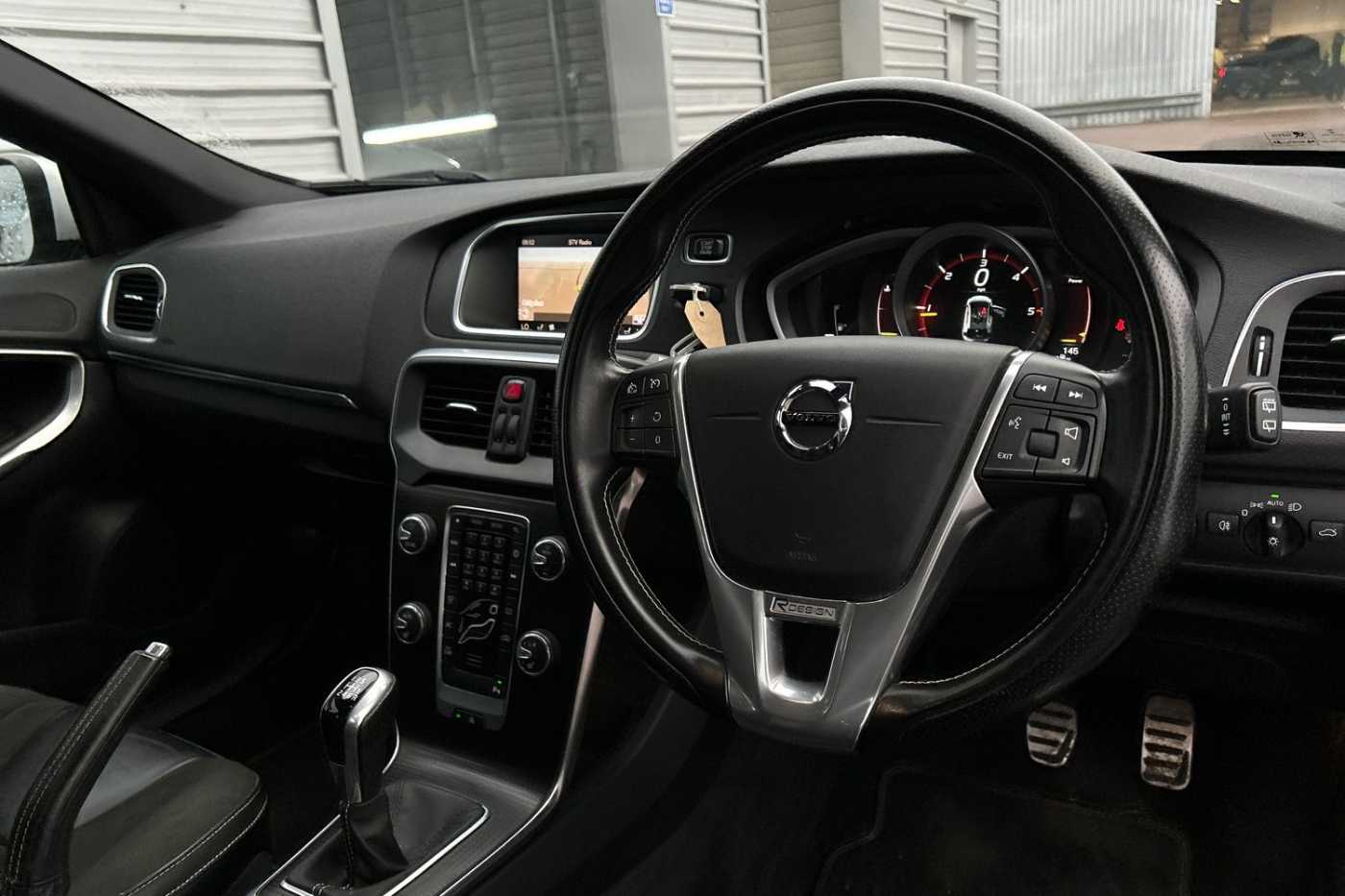 - Leather Steering Wheel with Chrome Trim. R-Design Logo